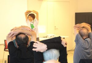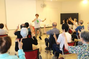 運動教室の体験では、運動講師の方の明るく元気のいいかけ声に合わせて、二重課題運動に取り組まれていました。体を動かし、頭を動かし、心を動かすことで、自然と笑顔があふれていました。