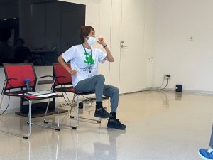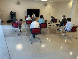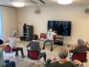前回よりも皆様、顔馴染みとなり、笑顔もあふれる中、ストレッチや二重課題運動、有酸素運動などに取り組まれていました。講師は受講生に寄り添い、ご様子を確認しながら、丁寧にそして専門的な見地を交えてプログラムを組み立ててくださっています。