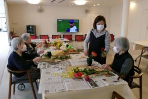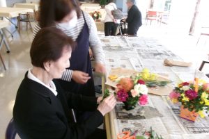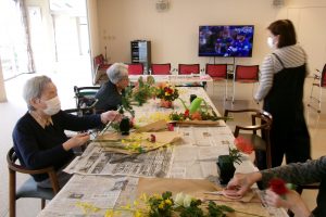 毎月、お花好きのご入居者にお集まりいただき、季節の花々のアレンジを楽しんでいただいています。