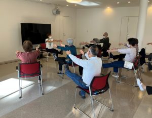 本日は、いつも以上に受講生の皆様の大きな声が印象的でした。頭と体を動かしながら声を出すことで嚥下機能や体幹の筋力向上への効果も!!