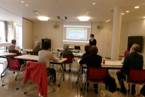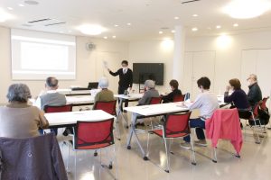 神戸大学大学院 保健学研究科 認知症予防推進センター 古和久朋教授によるご講演、受講生の皆様は画面に目を釘づけにしながら、熱心に聴講されていました。